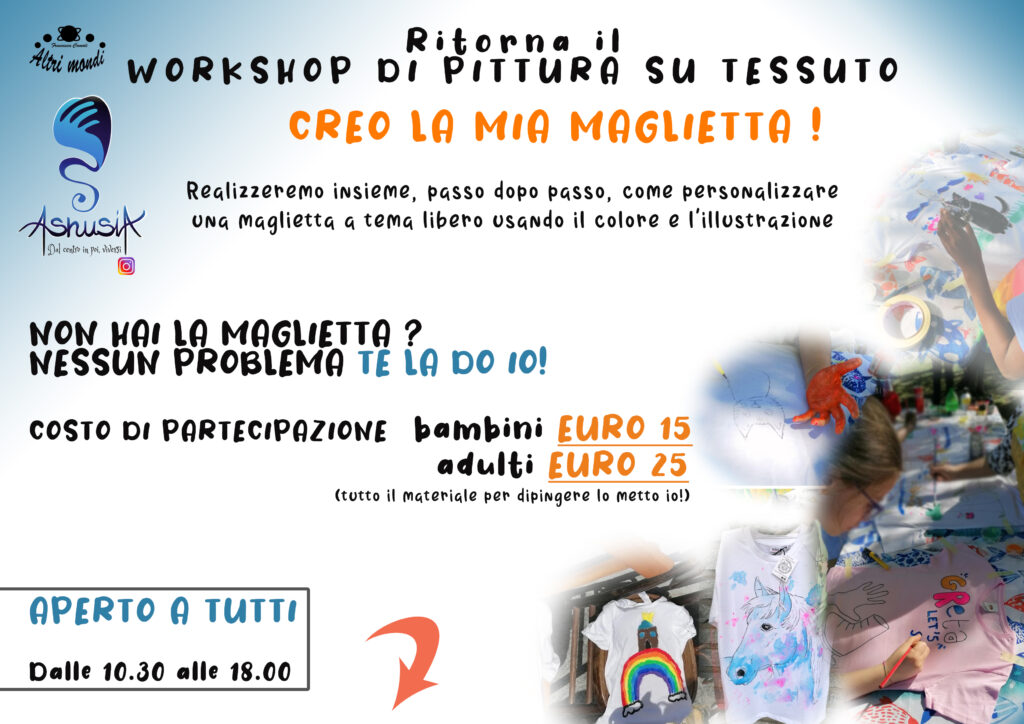 Compila qui sotto scrivendo NOME PARTECIPANTE , ETA’ E MISURA T-SHIRT – A CHE ORA VUOI FARE IL WORKSHOP – NUMERO DI TELEFONO